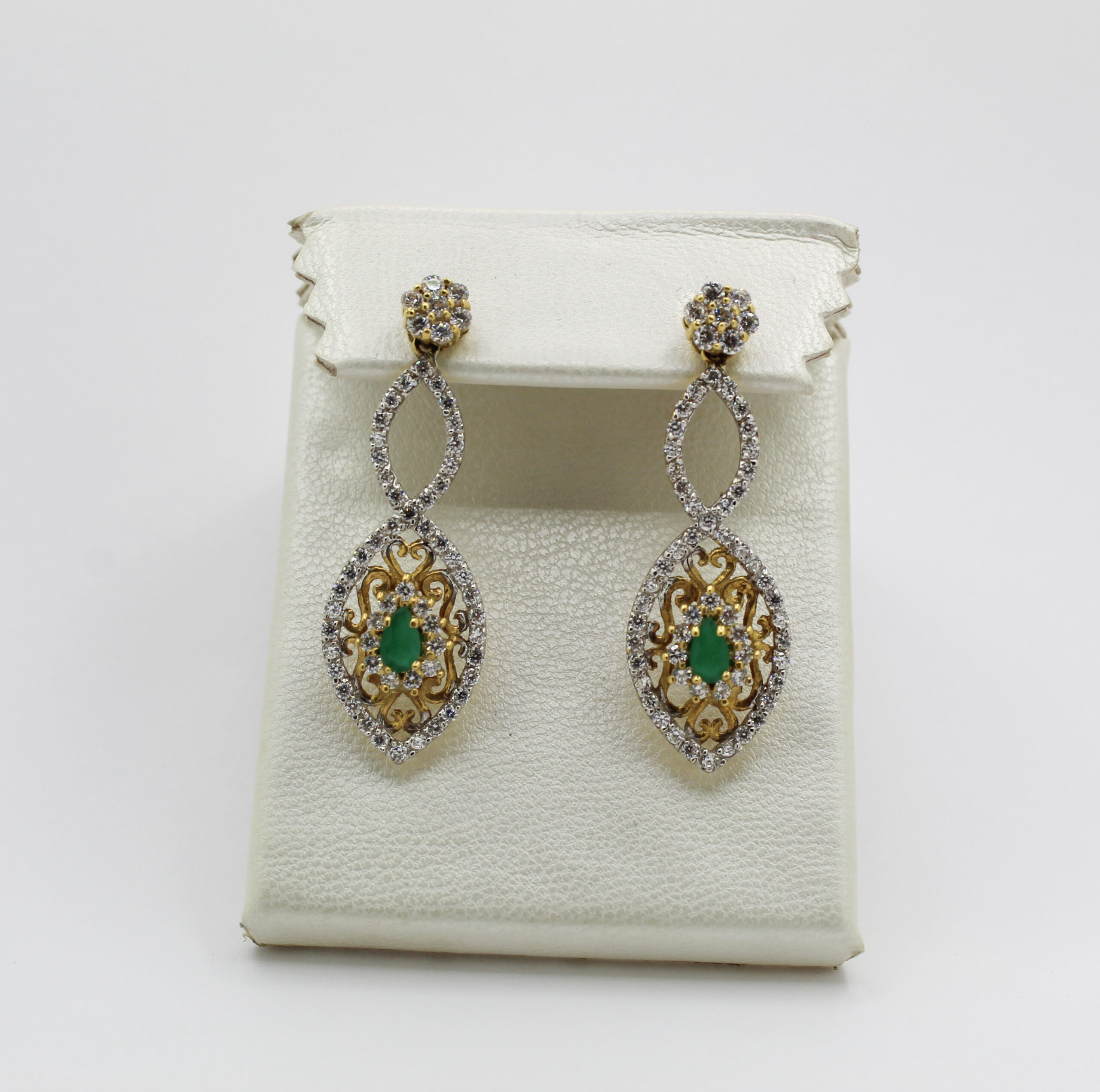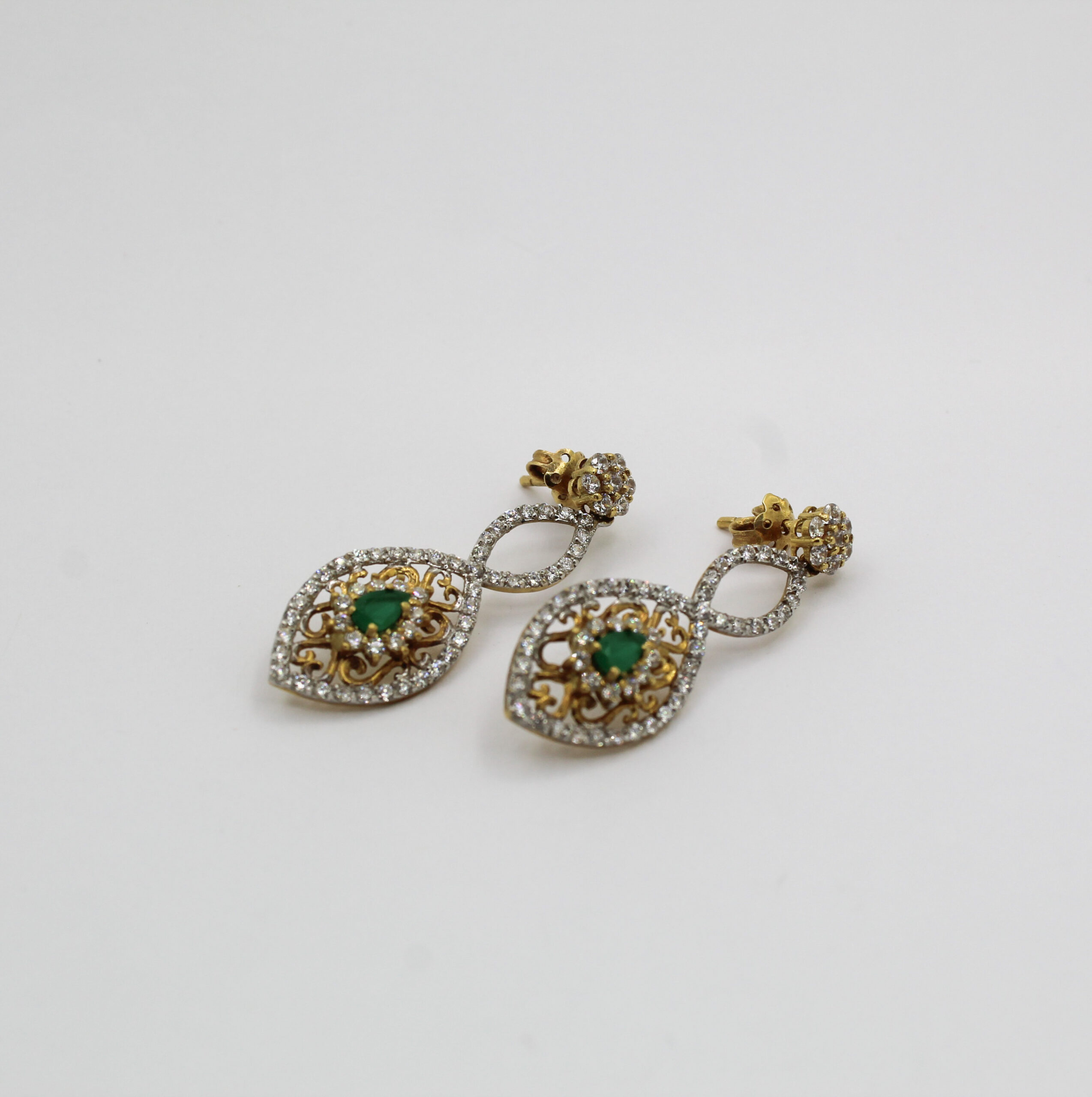 أقراط ذهبية فاخرة بتصميم ملكي ولمسة زمردية آسرة