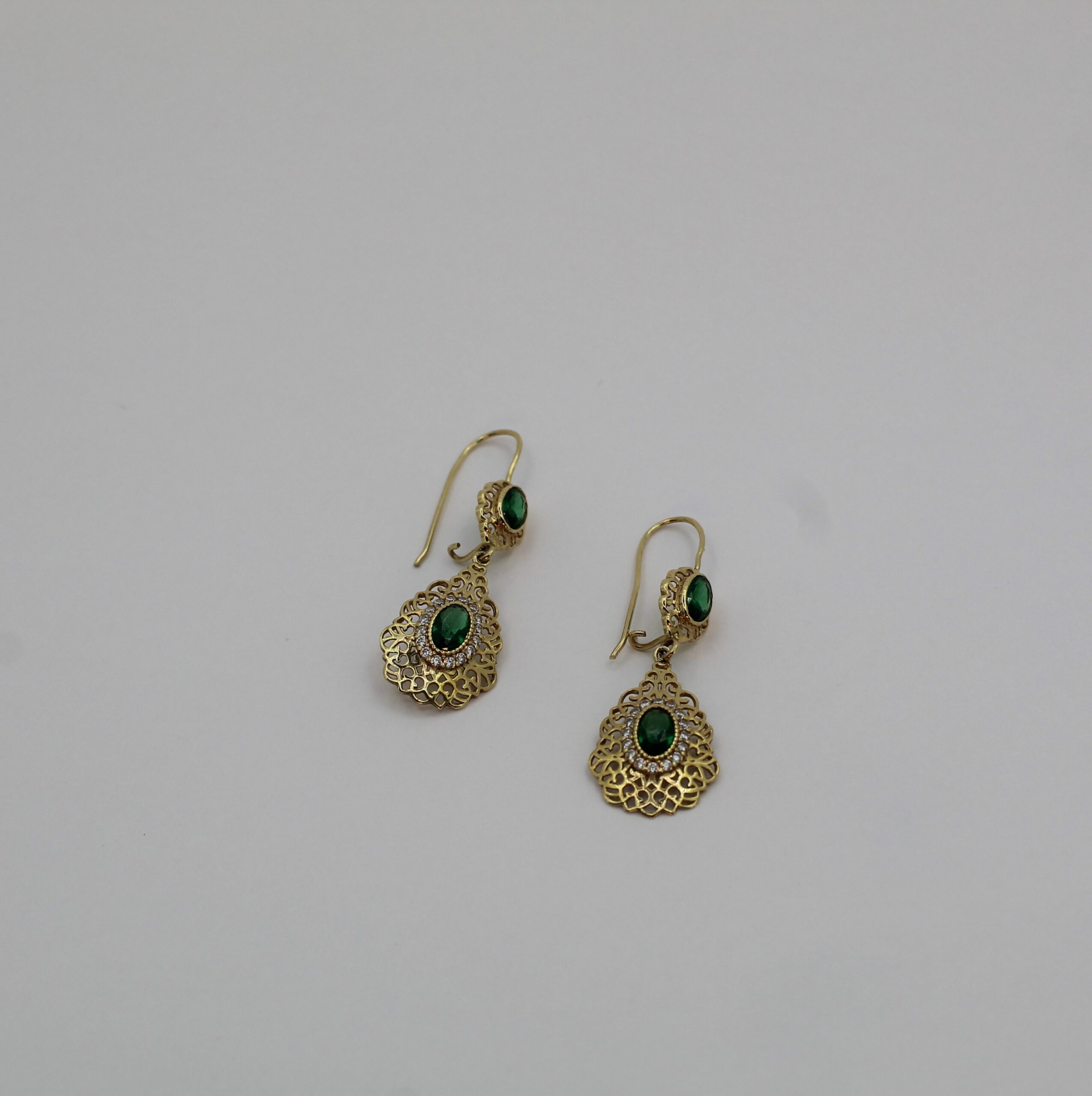 اقتني الآن هذه الحلقات الذهبية التقليدية العصرية المزينة بأحجار كريمة باللون الأخضر الملكي، وأضيفي لمسة من الفخامة والجاذبية لإطلالتك.