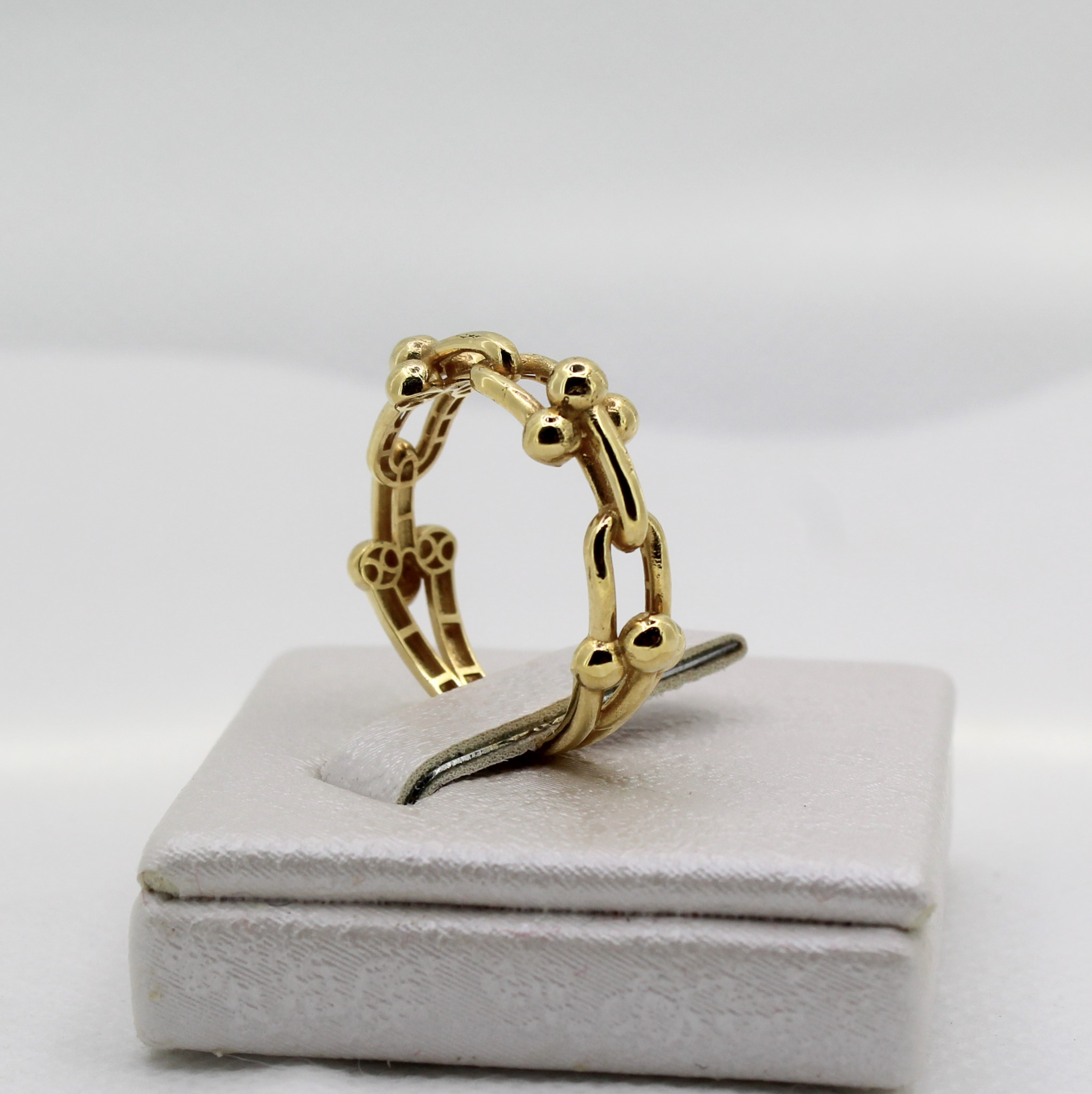 تيفاني تعتمد دائمًا خطوطًا دقيقة وناعمة في تشكيل الخواتم الذهبية، مما يجعل القطعة مريحة للارتداء اليومي وفي نفس الوقت مناسبة للمناسبات الراقية. الخاتم مصمم ليحافظ على لمعانه مع مرور الزمن، بفضل جودة السبائك وعمليات الصقل الدقيقة.