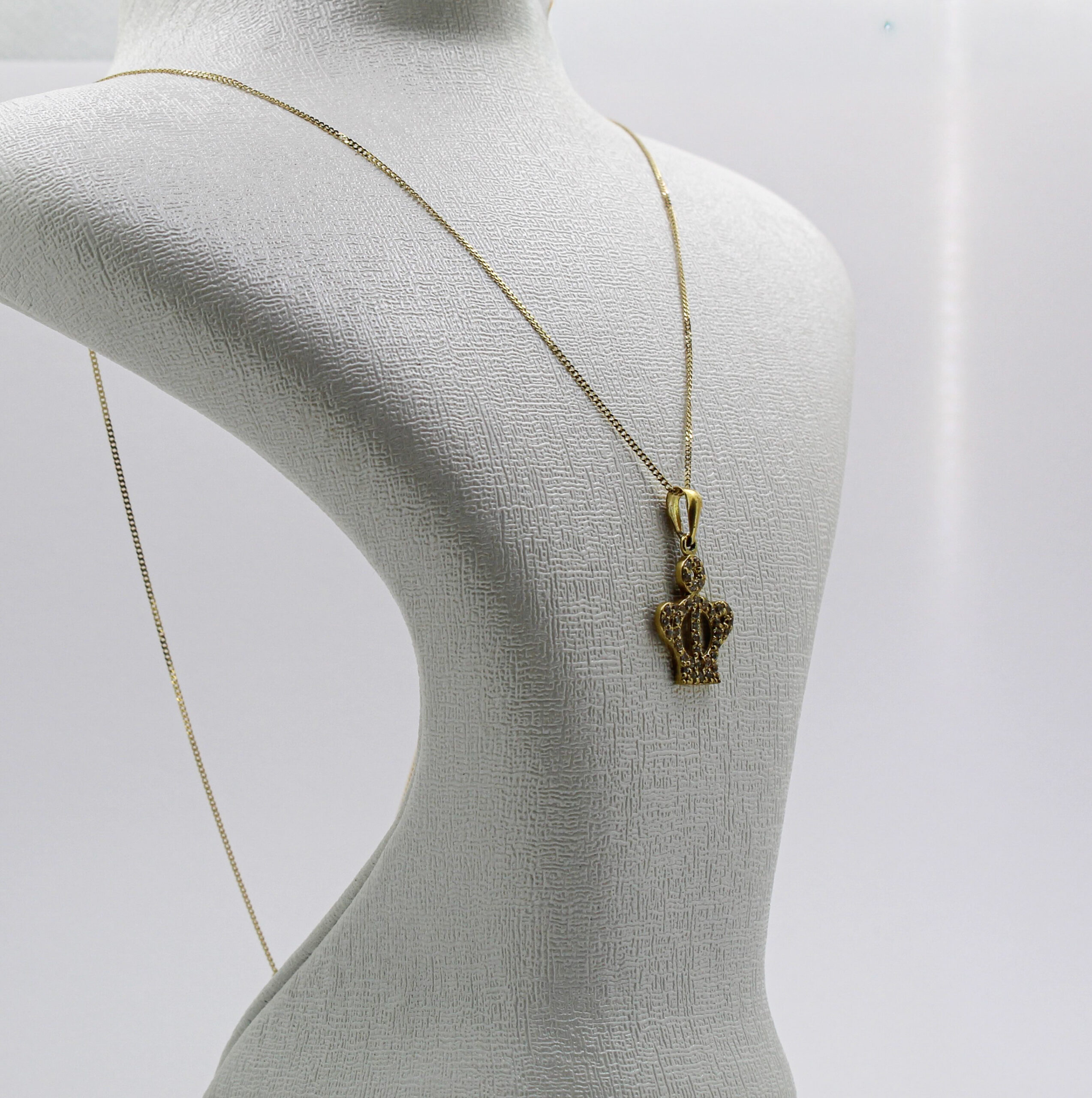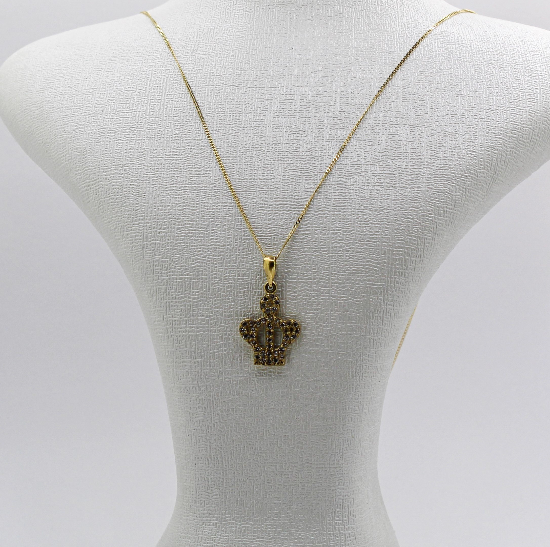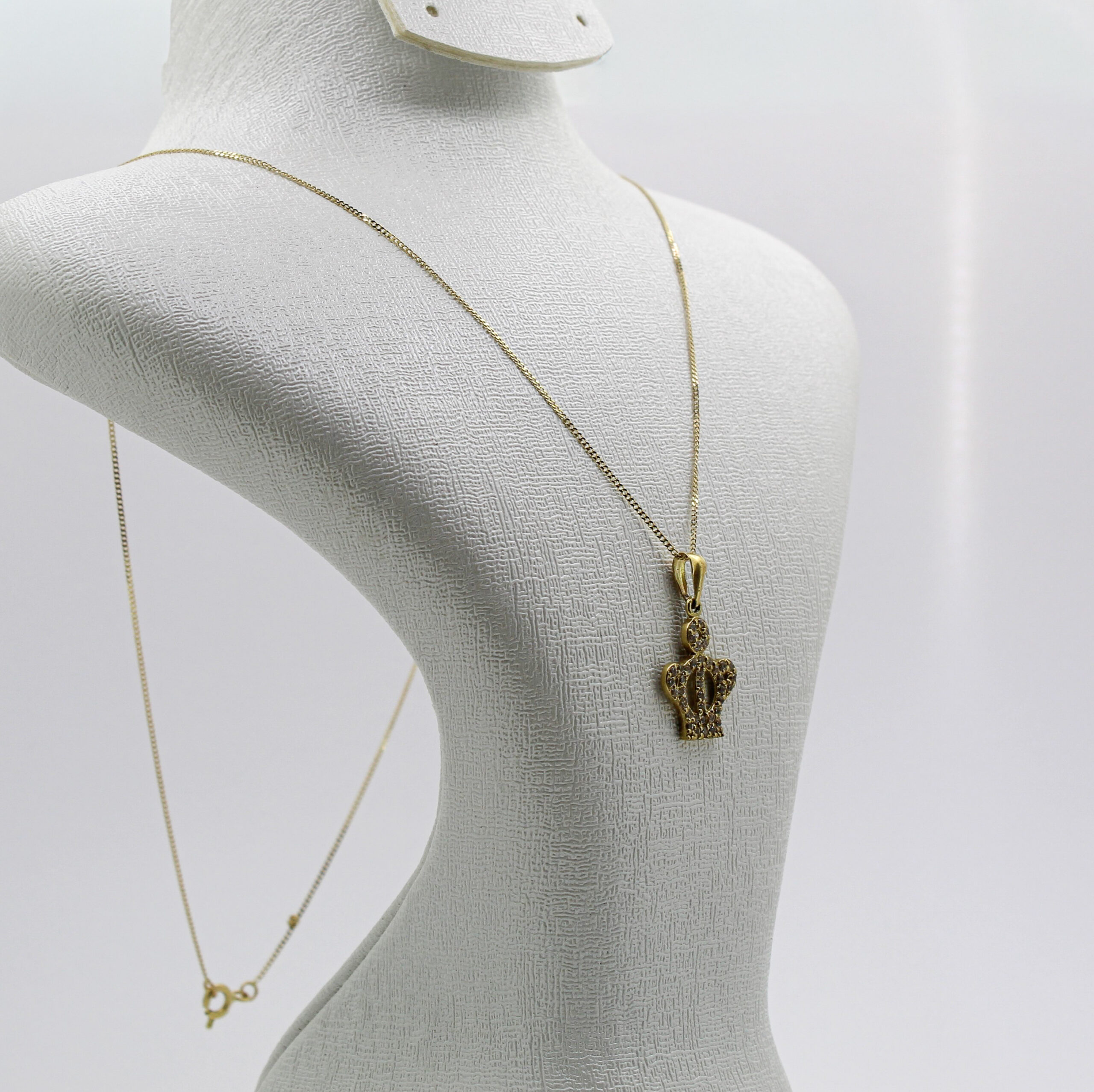 التصميم و الشكل :تتميز هذه السلسلة بقلادة على هيئة تاج ملكي مصقول بالذهب، مرصع بالكامل بأحجار كريمة صغيرة لتأثير لامع وفاخر.