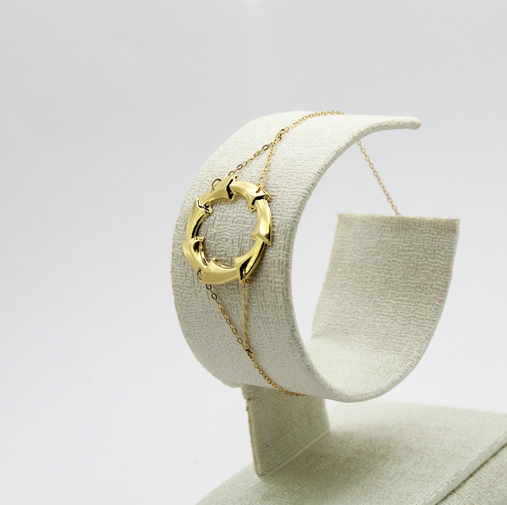يتميز السوار بصقل عالي (High-polish finish) يبرز الانحناءات والخطوط الانسيابية، مما يجعل الذهب يعكس الضوء ببراعة فائقة.
