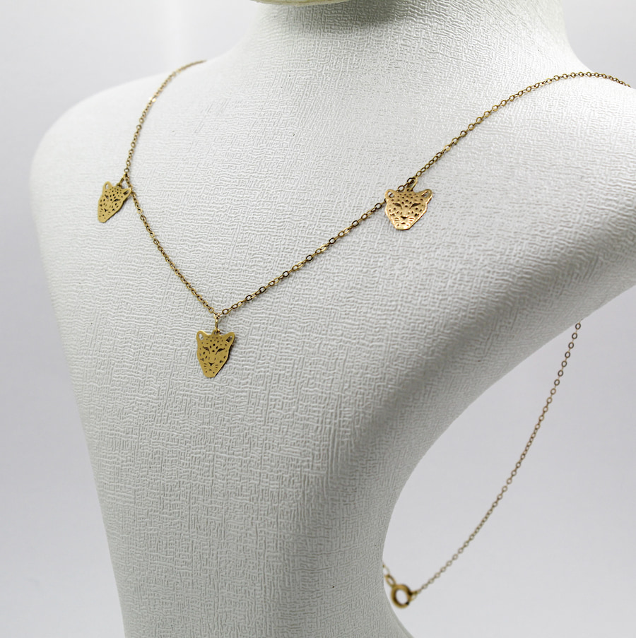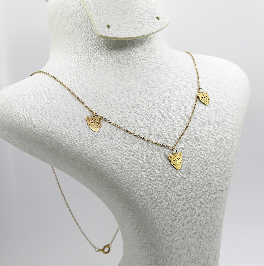 أضيفي لمسة قوة وأناقة إلى إطلالتك مع قلادة الفهد المصنوعة من الذهب عيار 18 قيراط، والمزيّنة بثلاث تعليقات أنيقة على شكل رأس فهد محفور بنقوش دقيقة تعكس الجاذبية والجرأة في كل تفاصيلها.